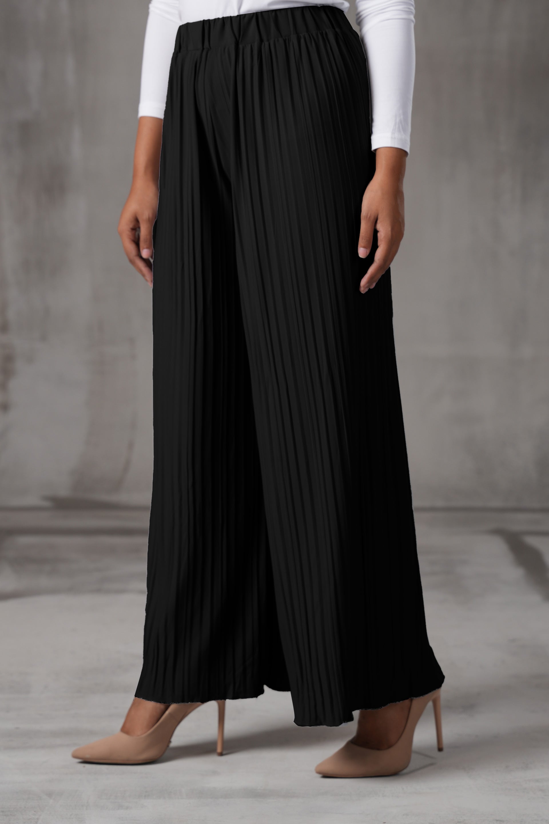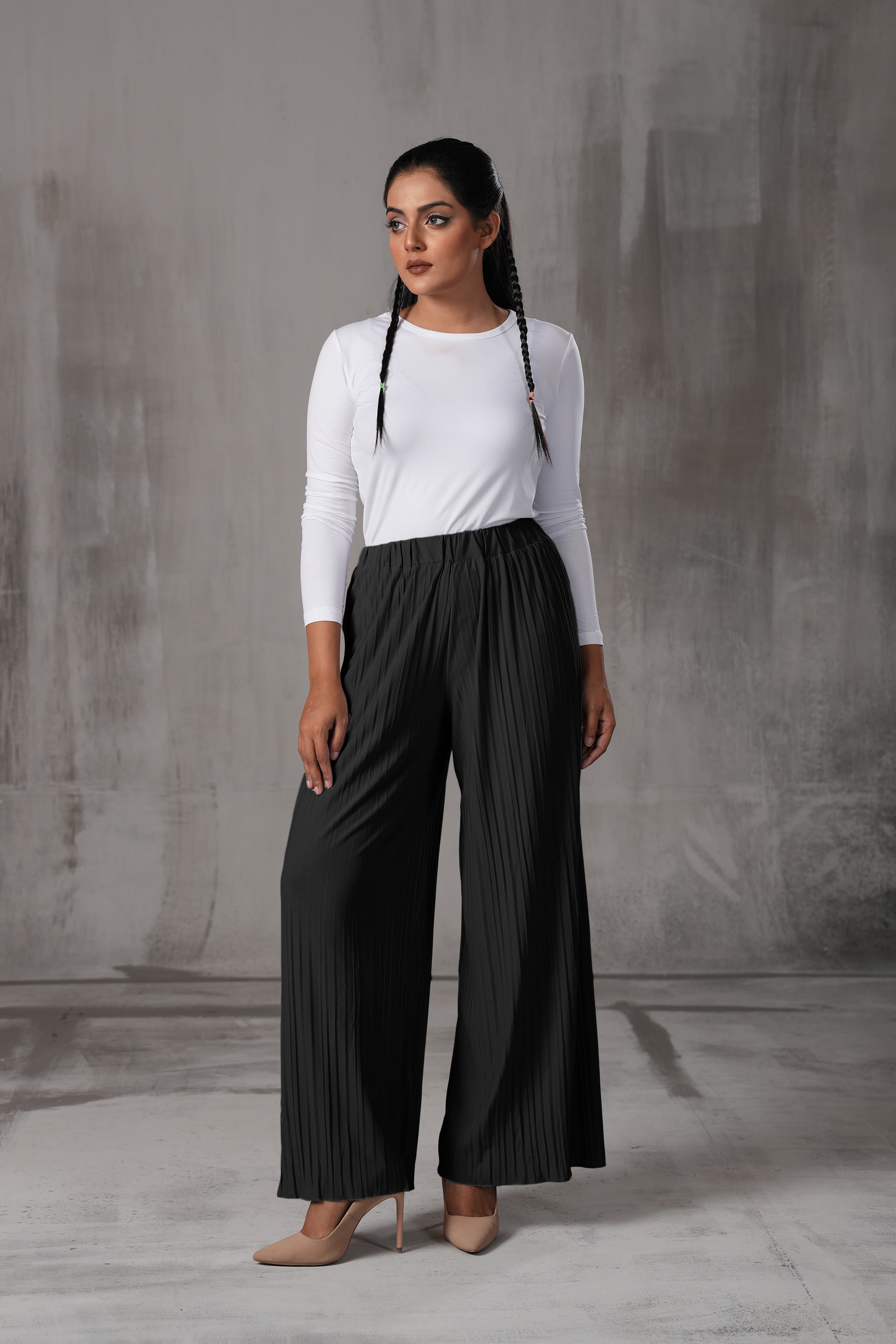 Premium Silk-Feel Palazzo Trousers with Embellished Waist