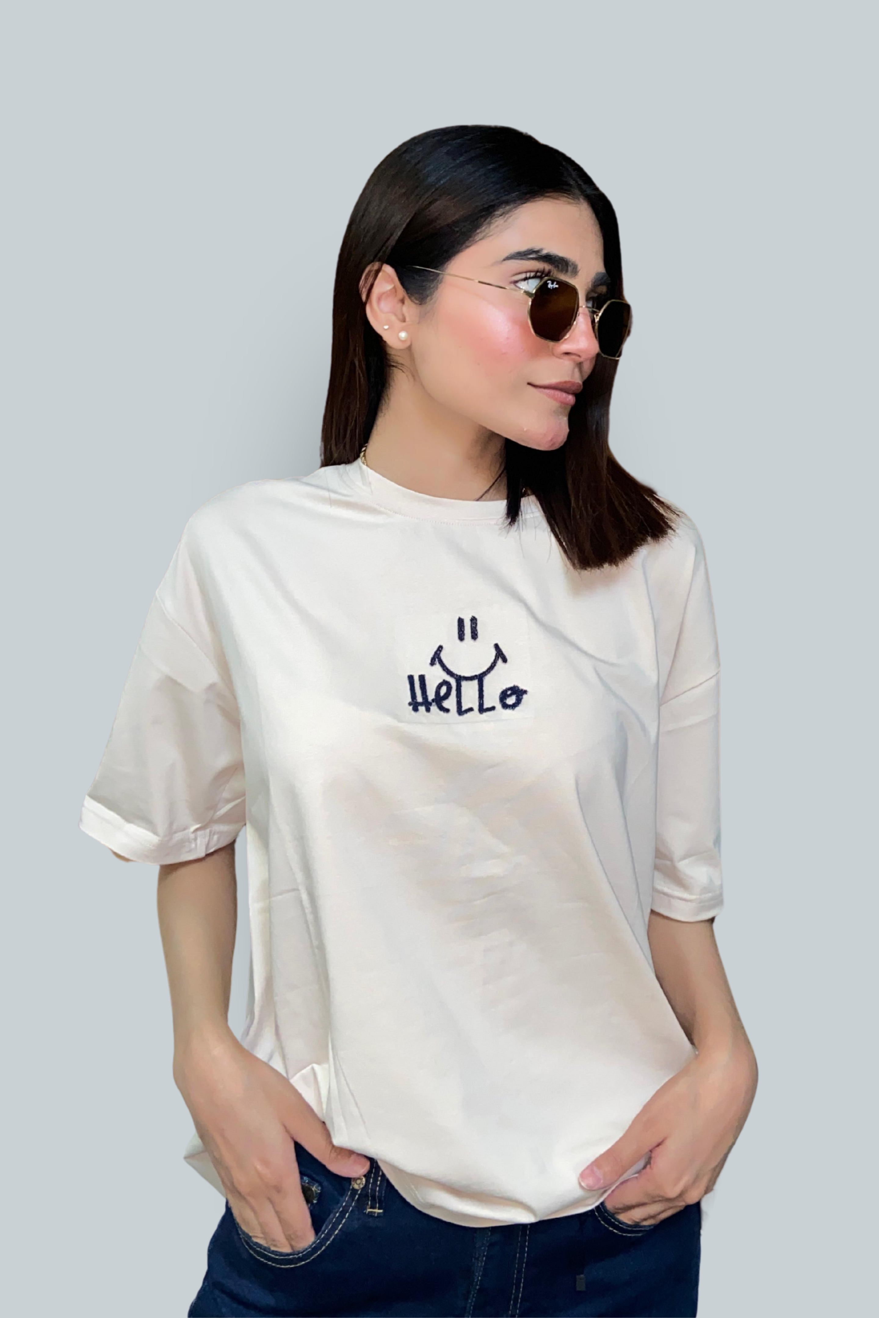HELLO DROP SHOULDERS T-SHIRT